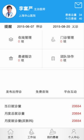 医生也可以在这里查询到自己的就诊量和月救诊量等各项数据