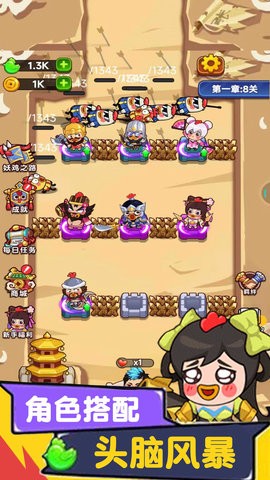 3、人物风格趣:三国历史人物形象融入诙谐幽默元素,每个角色都有独特搞笑的造型和表现,打破了传统三国人物的严肃形象。增添欢乐氛围。