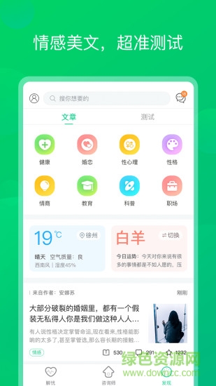 青柠心理app是一款免费的心理测试软件。本程序为用户提供了专业的心里测试和咨询服务。无论您有什么样的心理疑惑都可以在这里得到全面的答复。快来绿色资源网下载吧。