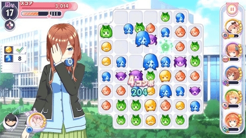 五等分的新娘是一款依据同名动漫改编的模拟养成游戏,它为玩家带来一场充满奇幻与浪漫的冒险之旅,游戏将众多动漫人物完美还原,让玩家仿若置身于动漫世界之中,玩家可以跟随经典剧情,开启各种冒险挑战,既拥有极高的自由度,又能与每一位NPC自由互动交流,全方位体验游戏的独特魅力。