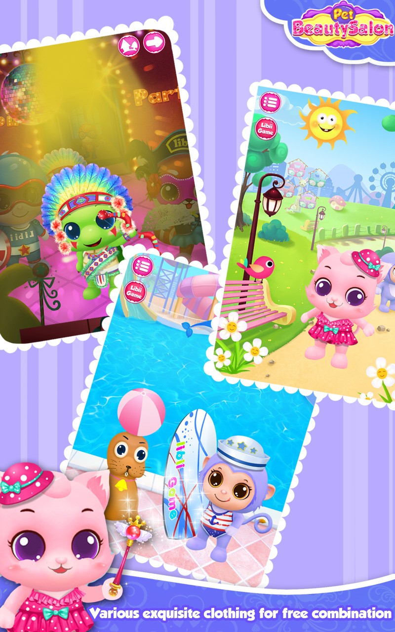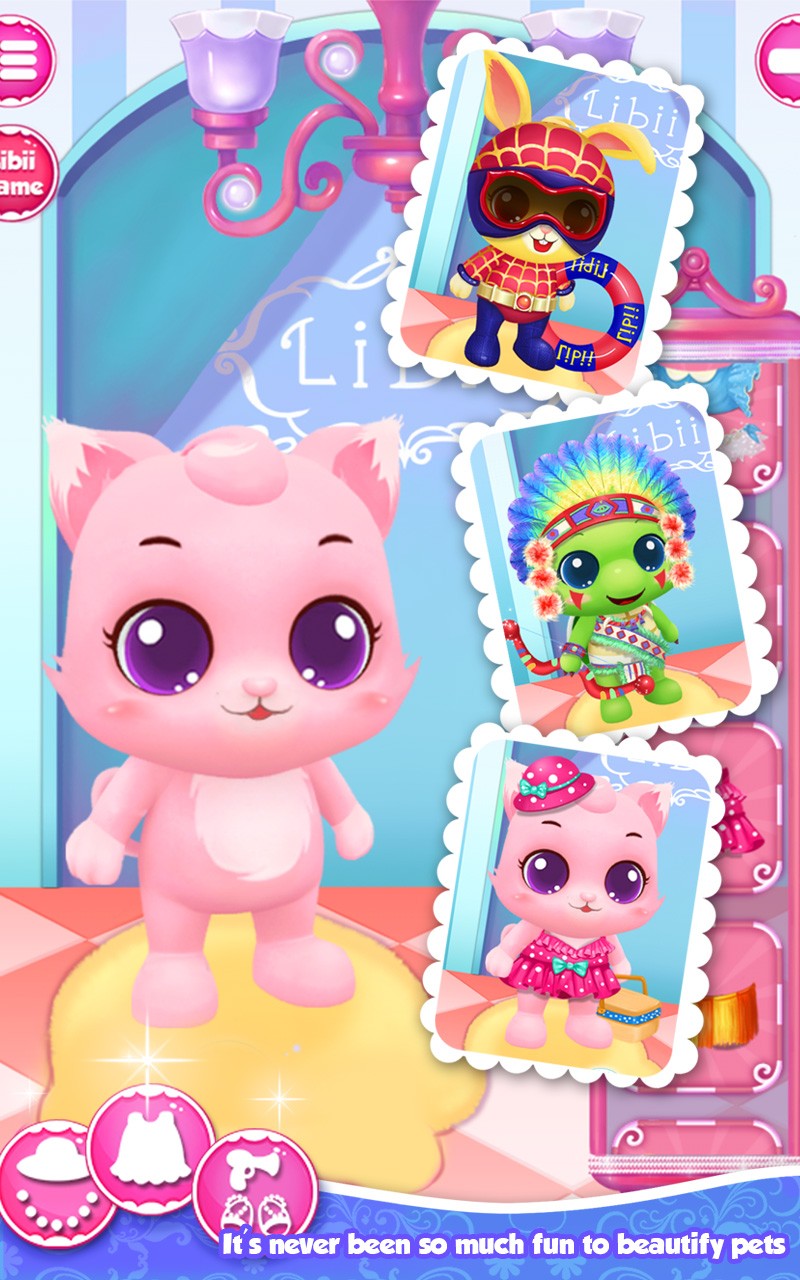 3、发挥创意美容换装:完成清理后,利用7种美容DIY和海量的精美服装、装饰品,为宠物进行美容和换装,打造出独特的造型。