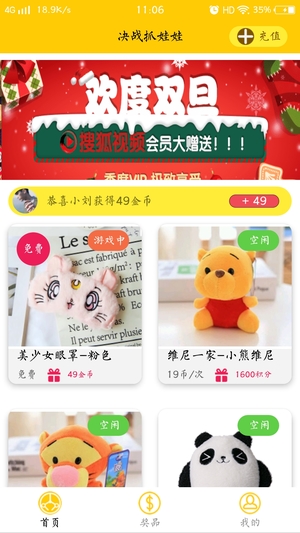 4、多样商城礼品:商城礼品丰富多样,不仅有各种各样的娃娃,还有各种实物以及影视会员等。满足了不同需求和喜好,让抓到的不仅是娃娃,还有更多实用的礼品。