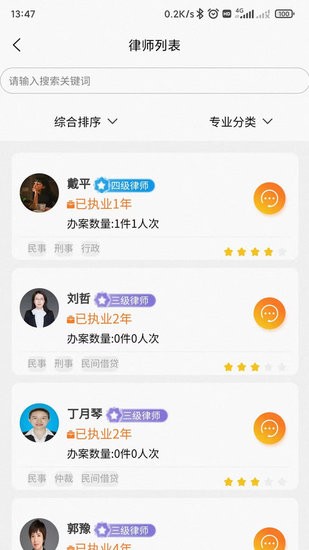 律助客户端app让用户可以随时获得更多的法律帮助,用户在软件之中可以随时寻求法律上面的援助,许多的法律问题都可以在软件之中获得解决,还有许多的律师可以让用户进行咨询。