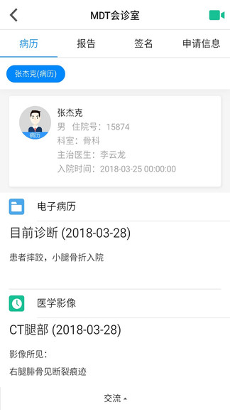 mdt会诊系统安卓版主要供医生用户使用,支持在手机上查看患者的详细病例,支持进行远程会诊,会诊模式多样,支持单人和多人会诊,电子病历、医学影像一目了然,欢迎有需要的朋友下载使用!