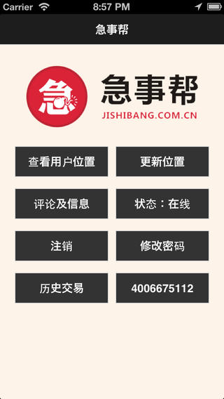 急事帮主要为城市中的用户和服务人员搭建了一个互动平台。您可以通过本系统为距离您最近的用户提供服务。用户通过急事帮系统可以快速的发现您,以方便您提供安全快捷的应急服务,开门锁、车锁、保险柜锁,紧急疏通马桶、下水道等。