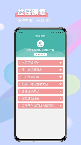 【盆底康复】:配置了不同类型的盆底康复治疗方案,根据临床症状、评估情况和自身需求,选择相应的治疗方案,足不出户享受专业盆底修复