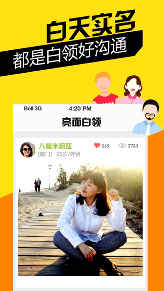 双面白领苹果版是一款非常新颖的专为白领所打造的社交软件,每个用户在这里都有2面,白天实名认证,聊工作交朋友,晚上9点自动匿名,谈心事、聊心里话,展示自我另一面,都市白领们都在用的社交神器,你还在犹豫什么,赶快下载体验吧!