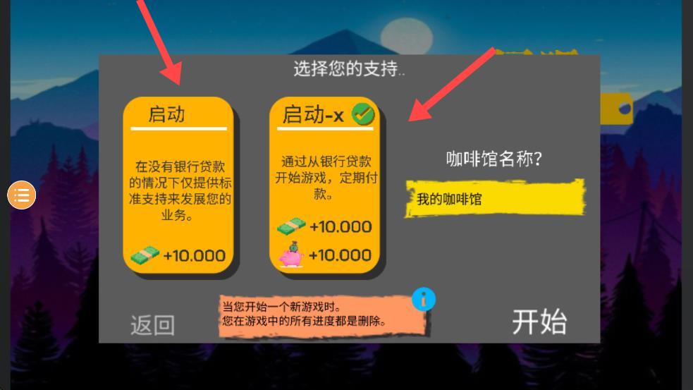 2、然后选择自己开局想要的经营模式不过更推荐选择左边那一个因为没负担。