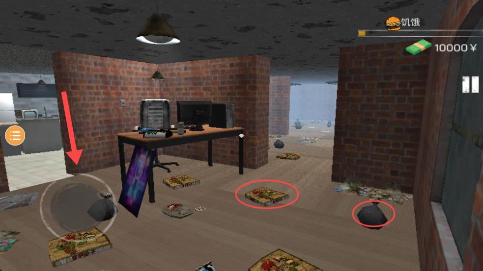 3、刚进到自己的网吧时要清理垃圾然后再安装电脑就会有客人开始关顾了,左下角的是控制方向且视角是滑动屏幕控制。