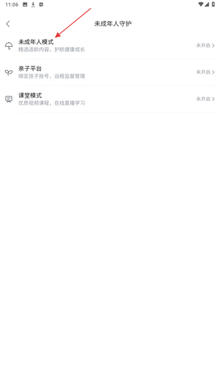 3、进入未成年人守护的界面内,点击未成年人模式。