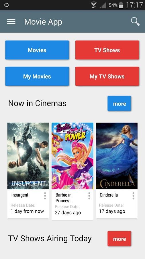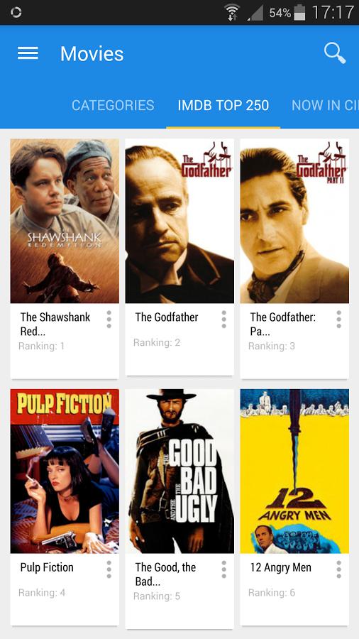 电影视图:会显示在剧院运行,即将推出电影,IMDB排名前250位和热门