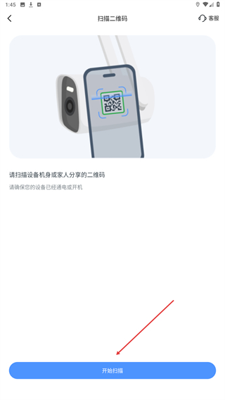 3、确认设备已通电开机后,点击开始扫描按钮,即可推进设备的添加流程。