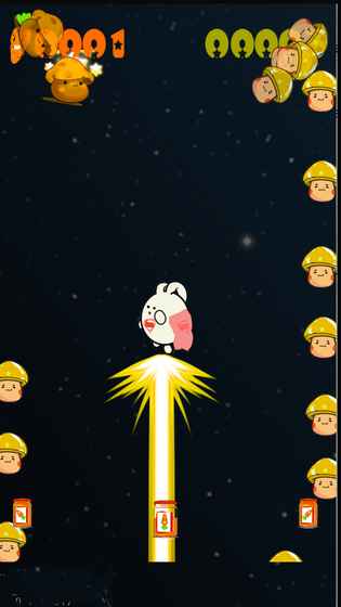 2、魔性玩法趣味十足:玩法简单有趣,控制小兔子在宇宙中飞行,收集胡萝卜和蘑菇转化动力,不断向前探索。收集硬币、摧毁障碍物获取积分,超越朋友的分数等设定。