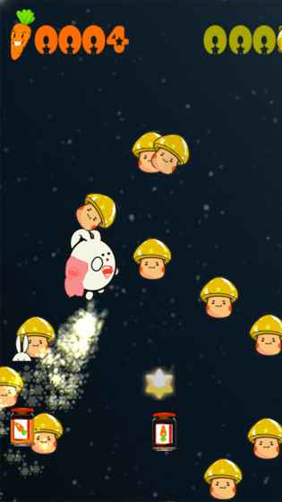 2、收集物品获取动力:收集胡萝卜和蘑菇转化为飞行动力,维持小兔子的飞行。同时收集硬币可获得积分,摧毁障碍物也能获取相应积分,为增加更多目标与挑战。