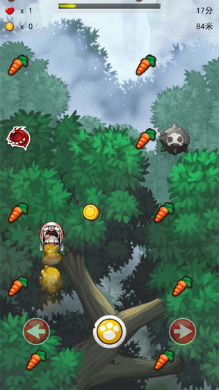 2、躲避障碍收集食物:需要控制不断升空的兔子,灵活地躲避各种障碍。要尽可能多地吃到胡萝卜,这些胡萝卜不仅是兔子的食物,还能为玩家带来分数和奖励。