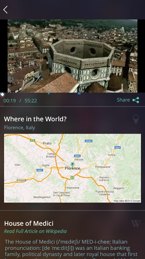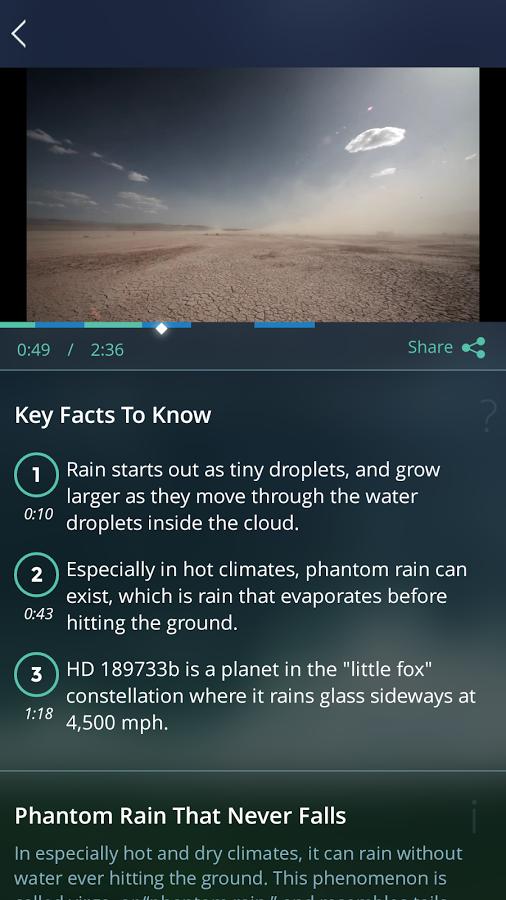 此款软件为英文版,所以推送的内容也都是英文的,且由于视频资源是YouTube,所以正常情况下视频是无法播放的……不过维基百科的完整文章是可以正常打开的