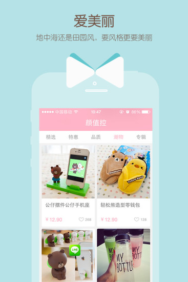 1.美丽范:精选高颜值饰品,满足你的少女心女神范;如果你在逛街时常被精美的小饰品吸引,那么美丽范一定会让你欲罢不能。