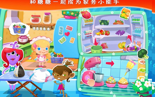 1、助力家人完成事务:点击家人们头上的气泡,接收任务,为妈妈制作美味蛋糕、精心种花、仔细整理衣物,然后陪哥哥玩钓鱼游戏。