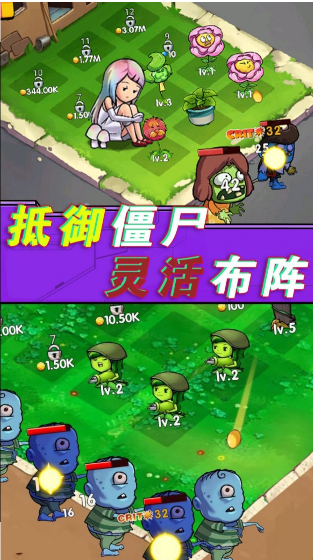 1、合并提升:玩家通过合并植物,提升植物的能力,使其在战斗中更加强大。
