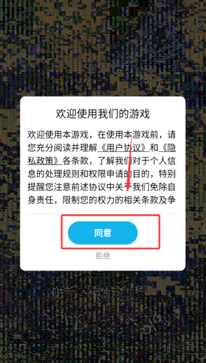1、首次启动需仔细阅读用户协议,确认后点击同意按钮即可进入游戏主界面。