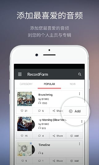 在您的手机和平板上安装RecordFarm app. 探索这个世界正在聆听的声音:从最热门的音乐到最流行的播客,教育,新闻… 创建您的个人音频主页,然后开始用声音记录你的生活。