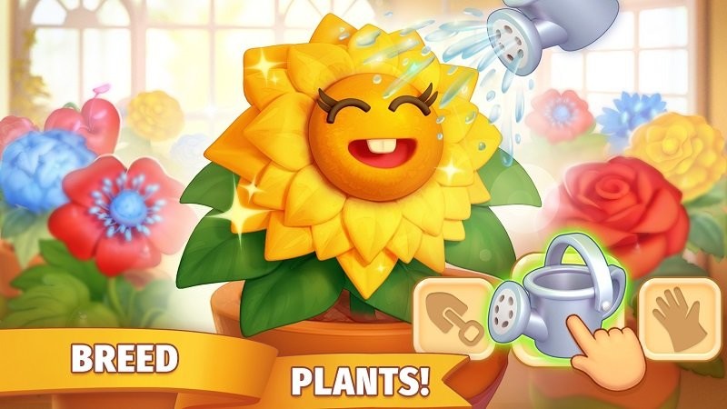 1、花卉兼并游戏:成为专业植物保姆,参与稀有花卉的兼并游戏,提升花园花卉品质。