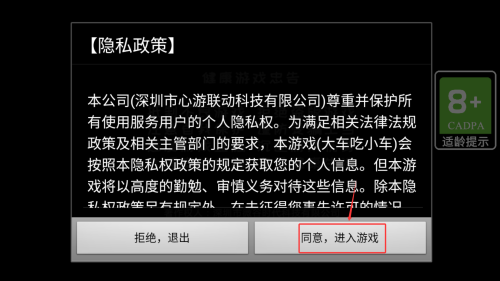 1、首次启动需仔细阅读用户协议,确认后点击同意按钮即可进入游戏主界面。