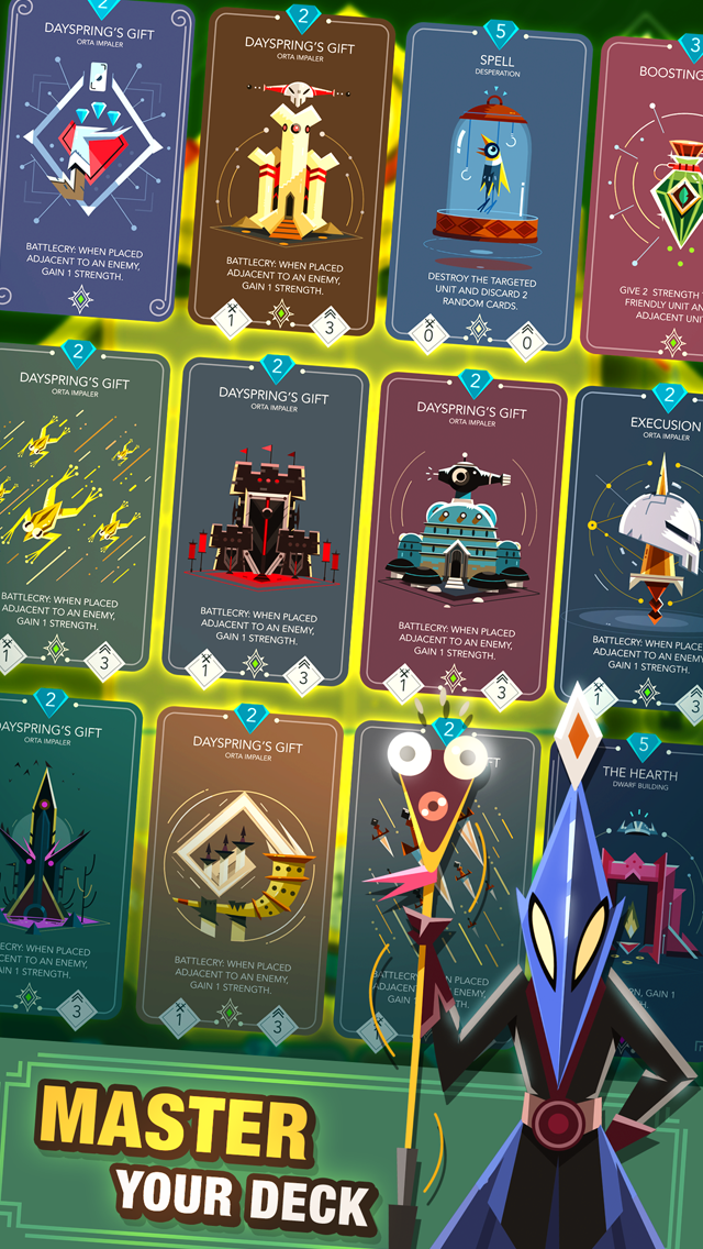 3、多样卡牌策略组合:数十种功能强大的卡片,搭配四个特色王国的不同风格,丰富多样的策略组合。尝试新的卡牌搭配与战术,探索自己的对战套路。