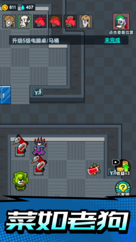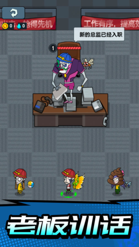 1、职场摸鱼压力释放:以老板压榨的工作环境为背景,玩家可在游戏中通过摸鱼躲避老板追击,利用摸鱼币建造防御塔阻挡进攻。