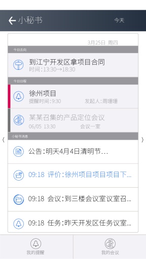 大秘app是一款帮你记录整理工作的手机软件,安装它,犹如身边有一个小秘书,用户可以通过软件记录自己的更新行程,让你随时掌握自己的日程计划,还能通过软件直接和公司人员进行在线沟通,需要的朋友赶快下载体验吧!