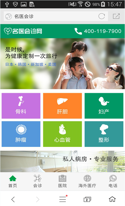 3.特色服务包含远程多方会诊、专属病房入住以及海外医疗体验等;