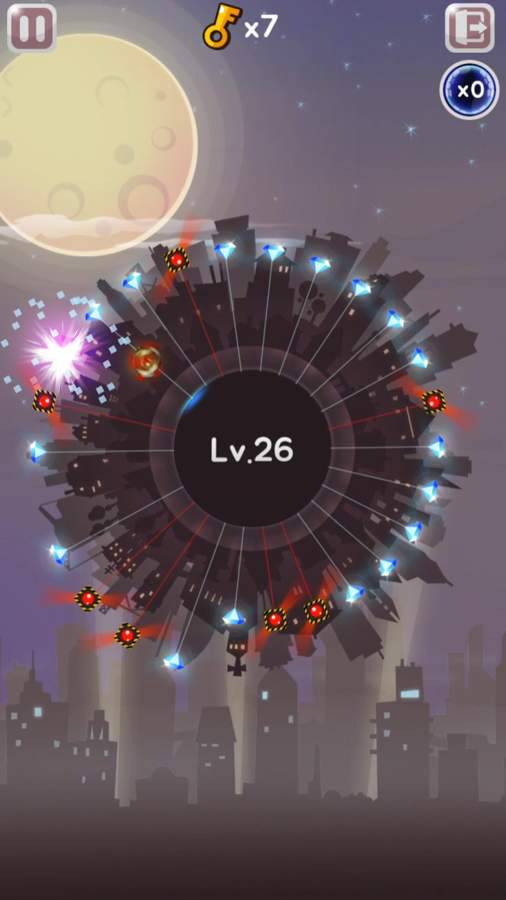2、挑战关卡收集宝石:依次挑战各个关卡,每个关卡的圆的旋转速度、宝石分布和障碍物设置都有所不同。需不断调整操作策略,收集更多蓝色宝石,获得更高分数。