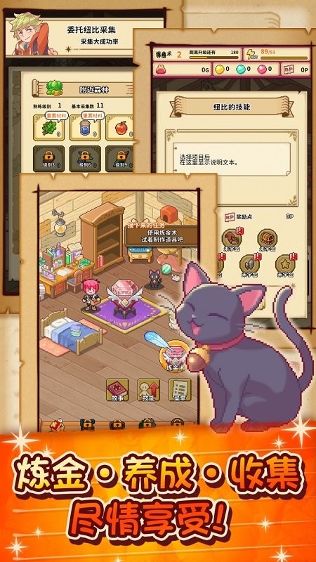 1、材料收集探索:玩家需要在魔法世界中四处探索,寻找各种珍贵的炼金材料,这些材料分布在不同的场景中,需要玩家运用智慧和勇气去获取。