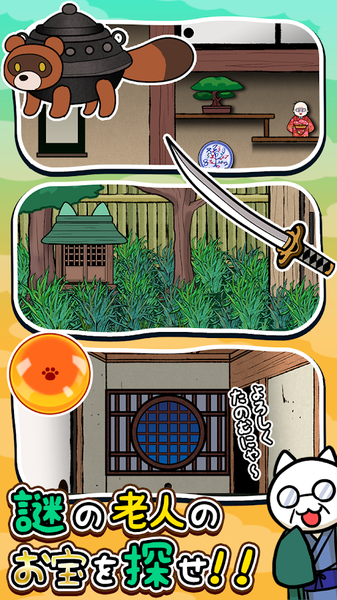 3、温情趣味贯穿全程:围绕帮助老爷爷寻宝的主线,融入温馨幽默的元素。可爱的白猫形象、老爷爷的亲切话语,搭配轻松诙谐的情节,感受到温暖与欢乐。