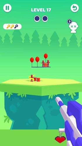 1、子弹策略与动态关卡设计:每关配备固定数量子弹,需合理规划射击角度与弹药消耗,可穿透障碍物或利用反弹弹道击杀目标。