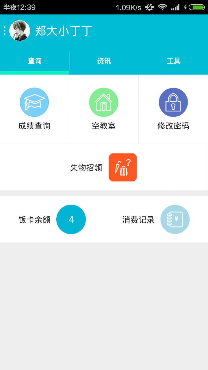 查询功能:能够查询自己的考试成绩,空教室情况、饭卡余额及消费记录等
