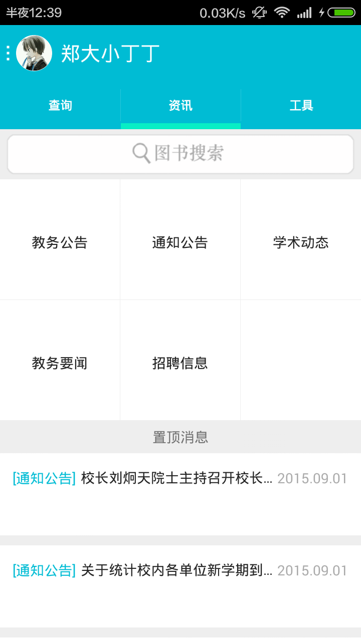 资讯:包括教务公告、学术的动态、教务要闻等校园资讯一手掌握