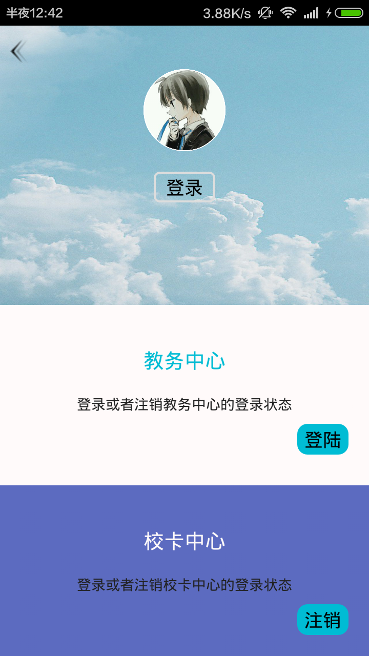 其中关于饭卡的功能,因为学校的饭卡中心在改版所以现在无法登陆,等几天就好了。