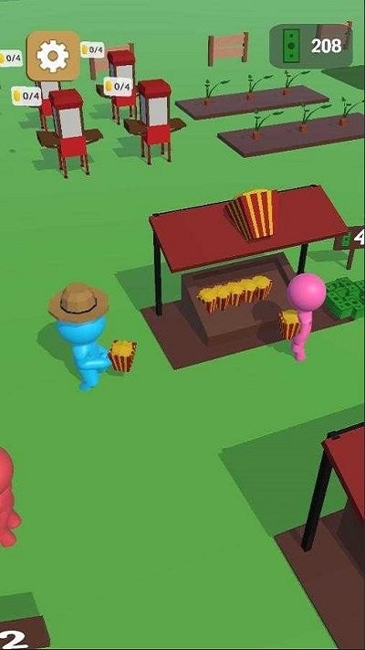 1、热闹社交互动:游戏中设置了丰富的社交互动元素,玩家可以与其他摊主交流合作,共同举办促销活动,还能与顾客互动。