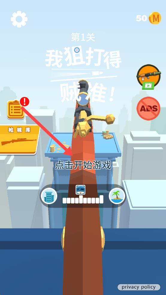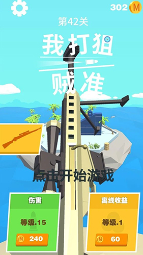 3、武器解锁与趣味道具系统:初始使用普通狙击枪,通过通关收集“狙击徽章”可解锁激光狙击枪、追踪导弹、冰冻射线等10+搞怪武器。