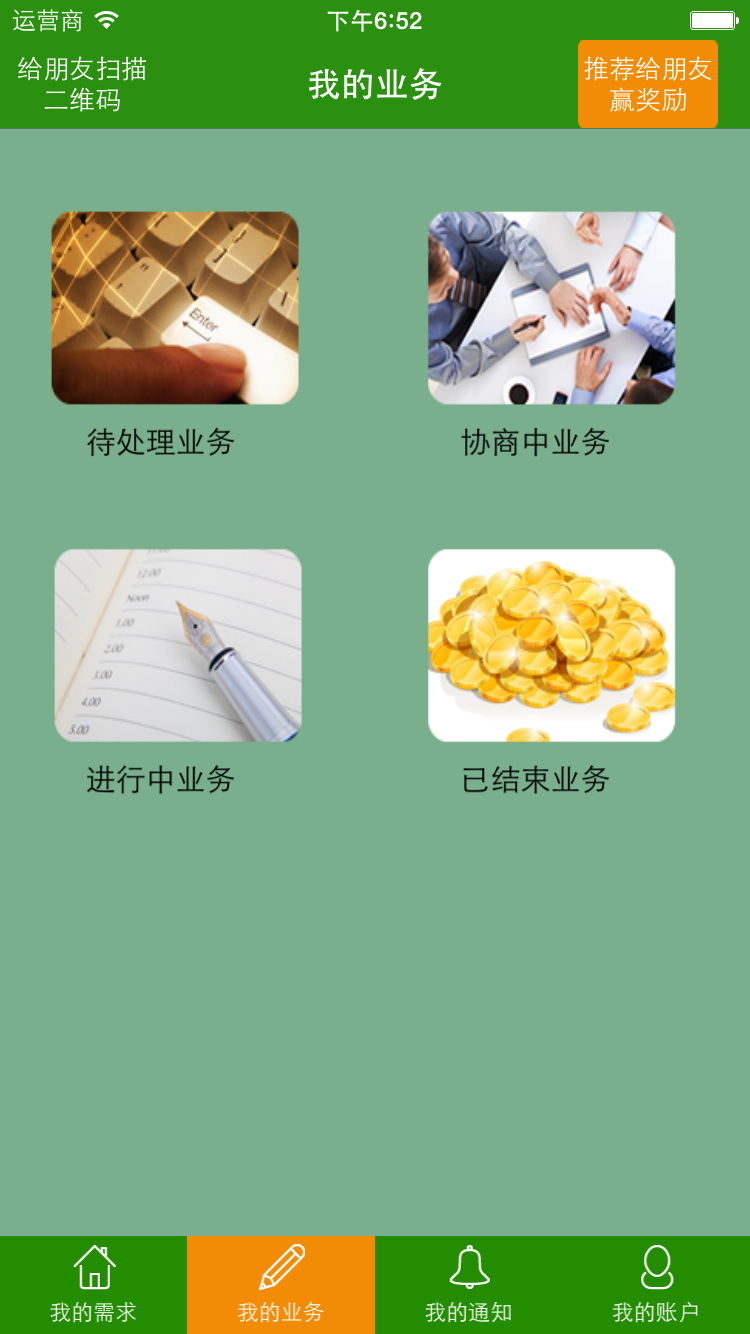 我的业务,可以查看进行中的业务,正在协商中的业务