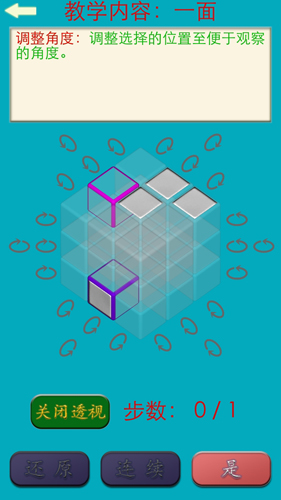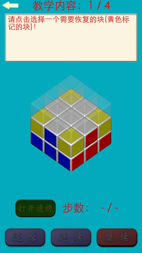 2、透视观察精准定位:选择目标复原块后,利用透视功能突出显示相关色块位置,清晰分辨需要移动的色块与目标位置的对应关系。