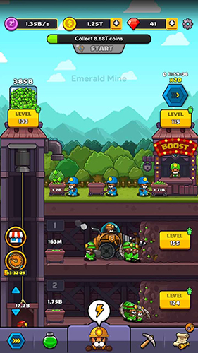 2、装备系统深度养成:丰富的金币体系支持兑换全新装备,从初级鹤嘴锄到自动采矿机,每种装备大幅提升开采效率,结合角色技能形成多样化的养成路线。