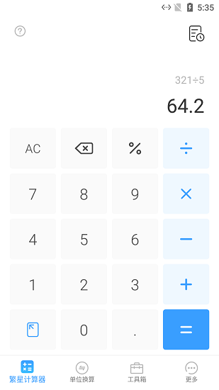 繁星计算器app是一款全能型的手机计算工具,您可以在这里进行流畅的计算操作,以后只要遇见任何的数学问题,都可以直接输入相关的数字进行计算,让您快速获取计算结果,这样就不用在手动计算,为您节省了许多的时间,让您不再为计算简单的试题浪费时间。