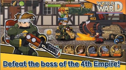 世界大战保卫战是一款卡通风格军事射击手游,背景设定在1900年代架空星球,第四帝国嫁祸狮子王国引发战争,玩家需组建国家保卫队,招募英雄布置防线,通过策略搭配与射击操作抵御敌人进攻,守护营地安全。