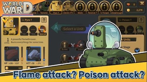 1、卡通画风与架空世界观:融合Q版角色与复古军事元素,构建蒸汽朋克风战场,还原议会纵火、王国对抗等剧情,打造轻松不失策略的战争体验。