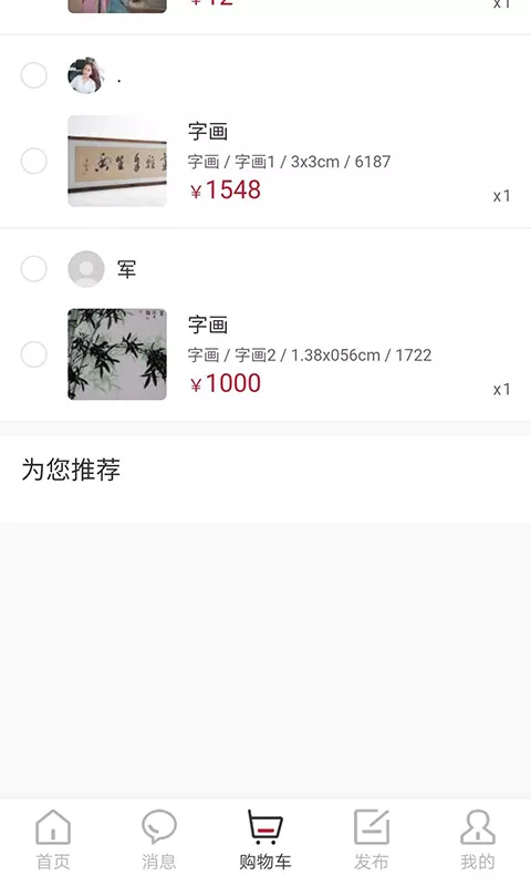 商品收藏,遇到喜欢的艺术商品可以批量收藏以便于关注价格变化;