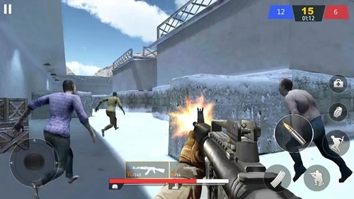 1、沉浸式第一视角体验:真实枪械后坐力反馈,搭配脚步声、爆炸声环绕音效,滑铲、掩体切换等战术动作,带来临场感十足的枪战体验。