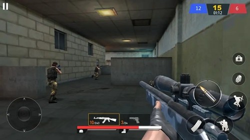 1、战术走位与掩体利用:第一视角滑动瞄准,点击屏幕射击,遇敌人火力压制时躲入掩体,通过探头射击减少暴露面积,寻找反击时机。