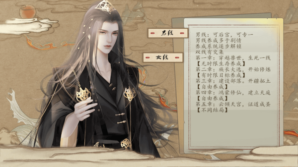 1、剧情线路自由抉择:开局自由选择男线或女线,跟随对应剧情发展,在关键节点做出选择,推动故事进程,解锁专属剧情与结局。